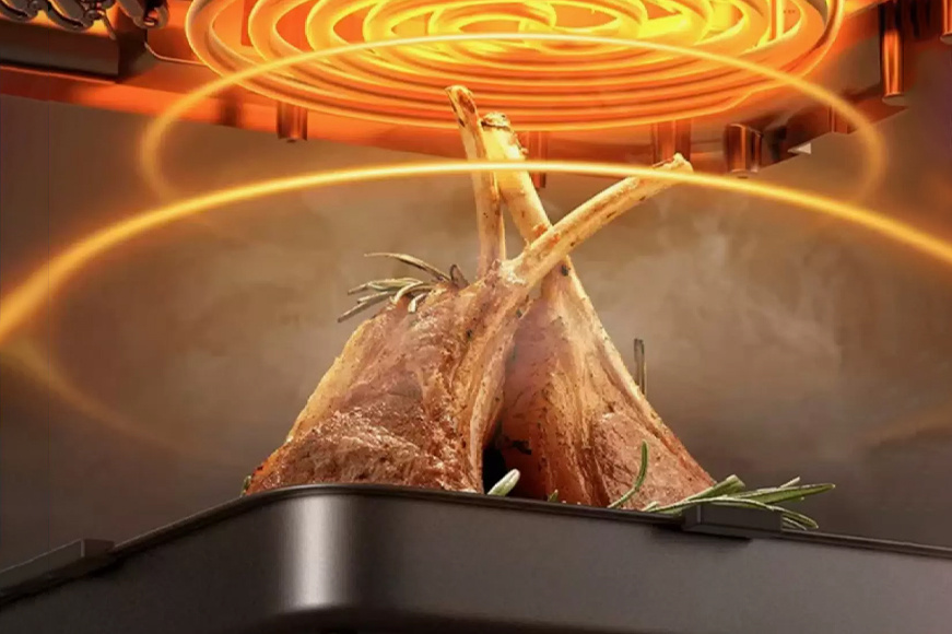 - Эффективная циркуляция горячего воздуха: благодаря обтеканию продуктов с разных сторон, достигается равномерная прожарка как снаружи, так и внутри.