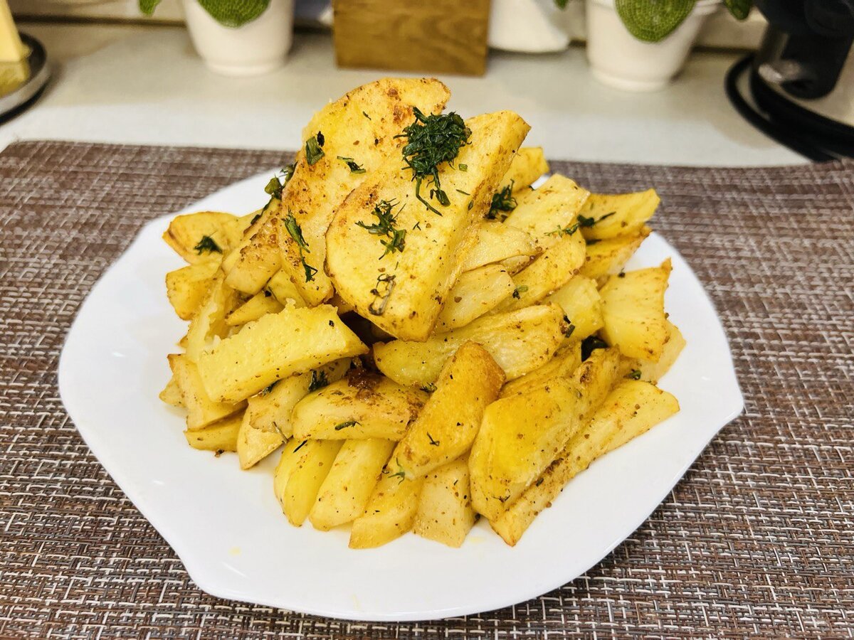 Готовое блюдо можно посыпать свежей зеленью и подавать горячим. Этот ароматный картофель станет настоящим угощением, от которого никто не сможет отказаться!