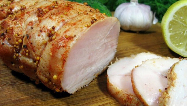 В глубокой миске объедините перец, паприку, горчицу и небольшое количество соли, используя по несколько чайных ложек каждого компонента. Можно экспериментировать с другими специями по своему вкусу.Добавьте оливковое или любое другое масло и тщательно перемешайте до получения однородной массы, которую не стоит делать слишком жидкой.Тщательно промойте куриные грудки, обсушите их и обмажьте получившейся ароматной смесью. При желании можно дополнить соусом на основе томатов.Чтобы мясо получилось максимально сочным, проткните филе вилкой в нескольких местах.Оберните каждую грудку в алюминиевую фольгу и оставьте на столе примерно на час для маринования.Поместите замаринованные грудки в форму для запекания и отправьте в предварительно разогретую до 170 градусов духовку. Запекайте на протяжении 30-40 минут, следя, чтобы они не пересохли.Когда мясо будет готово, извлеките его из фольги, дайте остыть и заверните в пленку. Затем уберите в холодильник на 2-3 часа.Получившаяся буженина будет нежной и сочной. Теперь нет необходимости закупать колбасы и сосиски, которые зачастую содержат минимальное количество мяса. Наслаждайтесь вкусом!