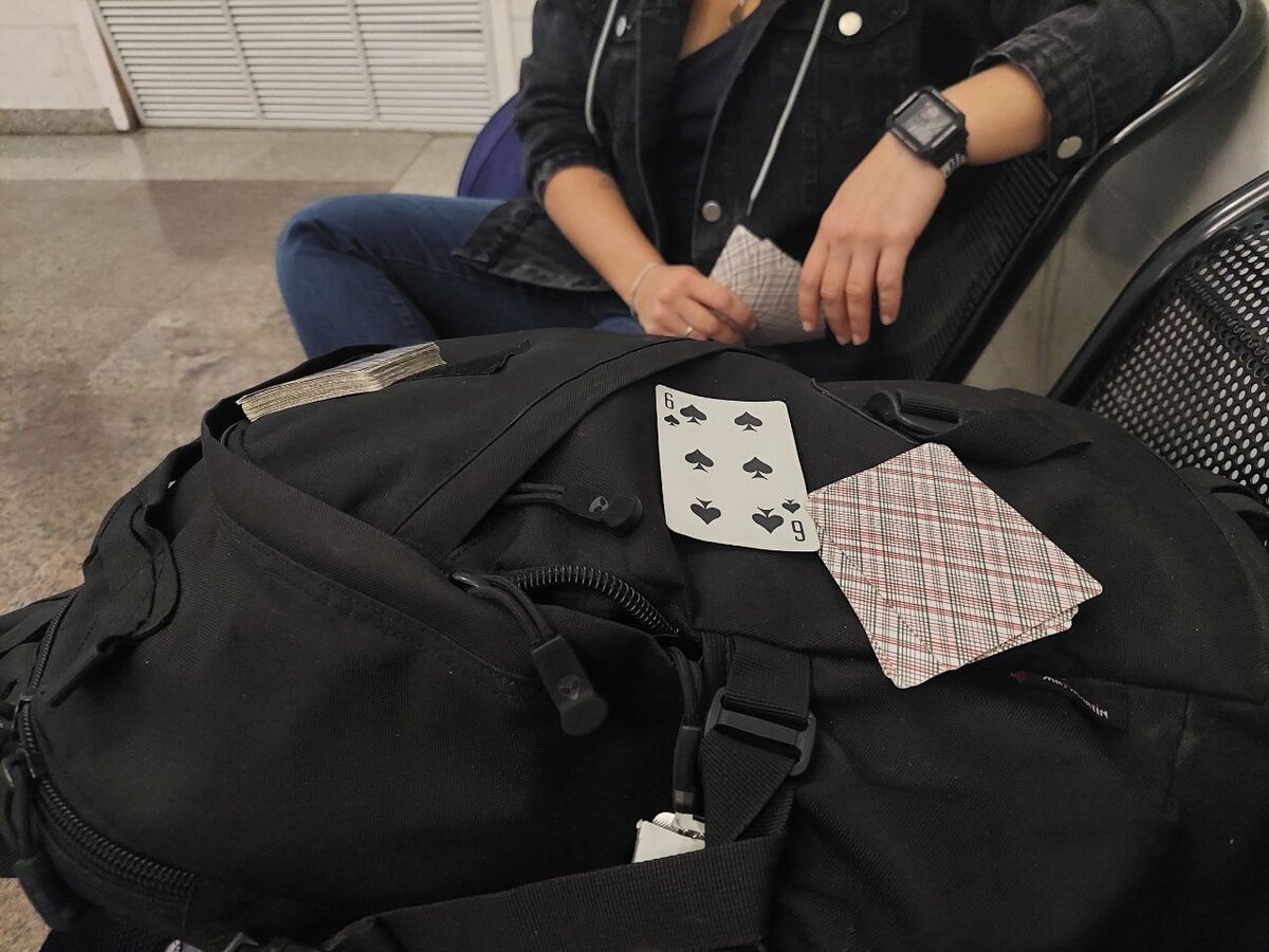 Прибыли на вокзал заранее, чтобы избежать суеты. Но довольно странная ситуация произошла, когда сумка с паспортом оставила в зоне проверки. К счастью, это было быстро исправлено, и ожидание поезда разнообразили игры в карты и другие развлечения.