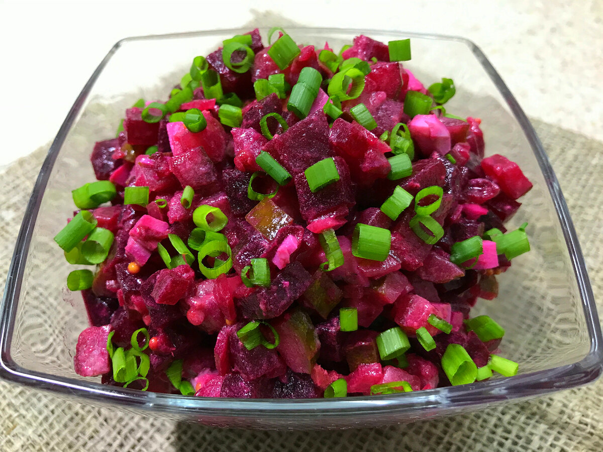 Чтобы создать это кулинарное произведение, начните с отваривания свеклы до мягкости. Нарежьте её на мелкие кубики и пересыпьте в просторную чашу для дальнейшего смешивания. Чтобы добавить сочности, сделайте заливку из подсолнечного масла (или любого растительного по вашему вкусу).