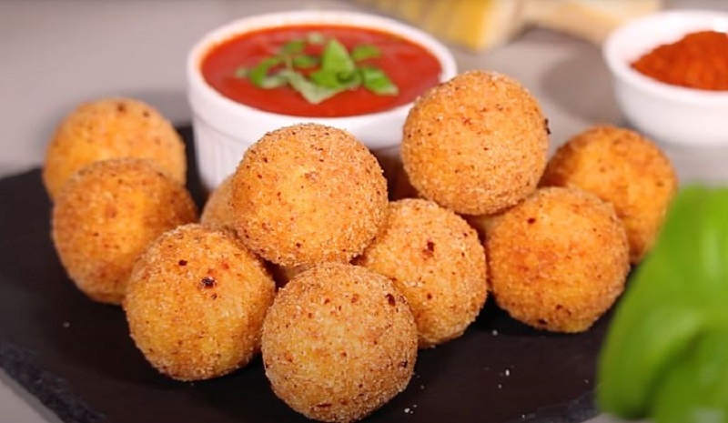 Секрет закуски кроется в сочетании двух видов сыра, что делает шарики внутри нежными и ароматными, а хрустящая панировка — настоящим наслаждением.