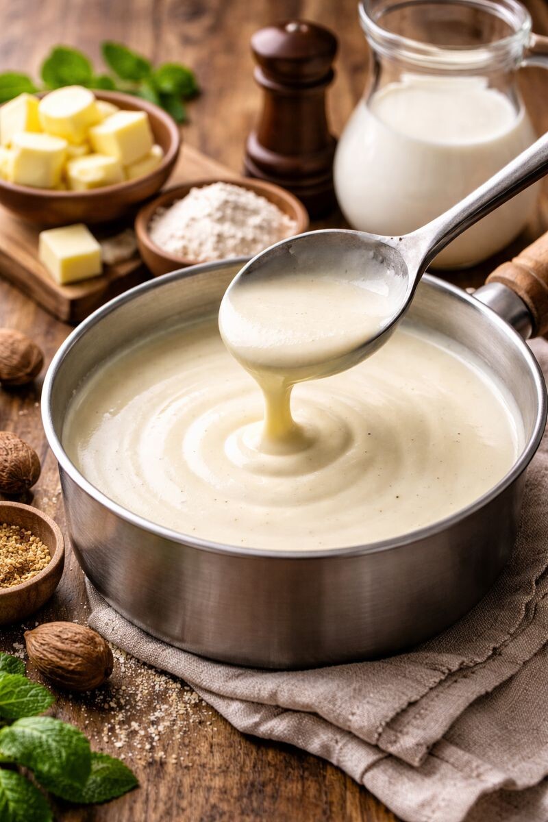 Избегайте сильного огня: бешамель предпочитает деликатность и медленное варение.