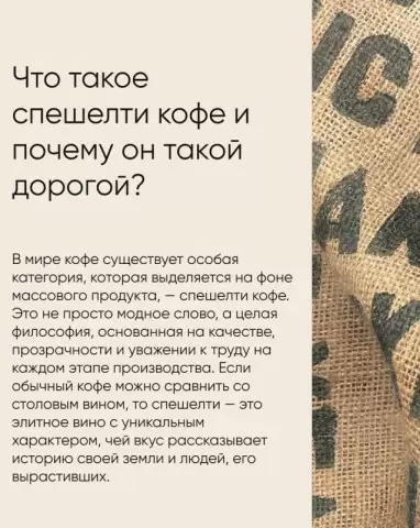 Зачем платить за этот рассказ? Потому что спешелти кофе не про быструю статистику вкуса, а про историю происхождения и мастерство, которое передается через каждую ступень обработки. Это путешествие зерна от фермы до чашки, которое особенно ощутимо в сравнении с массовыми сортами.