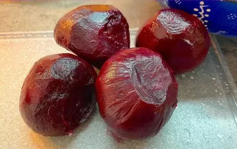 Приготовление этого салата начинается с выбора качественной свеклы. Главное, чтобы она была сладкой и не водянистой — это залог отличного вкуса и красивого внешнего вида. Затем свеклу можно запечь или отварить.
