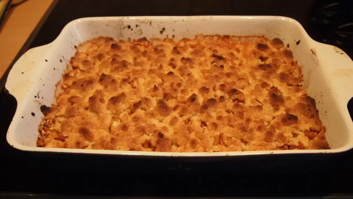 Очистить яблоки от сердцевин и порезать их на небольшие кубики.Выложить яблоки в форму, предварительно смазанную сливочным маслом, в произвольном порядке.Посыпать нарезанные яблоки молотой корицей и измельченным миндалем — учтите, что орехи не нужно превращать в порошок, достаточно оставить небольшие кусочки.Смешать холодное сливочное масло с мукой и сахаром, перетирая в крошку, избегая его растаивания.Равномерно распределить полученную крошку по яблокам и отправить форму в предварительно разогретую до 200°C духовку.Выпекать крамбл в течение 25-30 минут до золотистой корочки.Подавайте крамбл теплым, наслаждаясь его волшебным ароматом и вкусом!Полезный совет