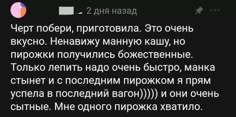 Популярные манники завоевали сердца и желудки многих гурманов. Несмотря на первоначальное недоверие к ним, даже те, кто не испытывает любви к манной крупе, отмечают их удивительный вкус и нежную текстуру. Эти пирожочки поражают своим сочным наполнителем и являются настоящей находкой для завтрака. Вот лишь несколько отзывов, свидетельствующих о том, насколько они стали любимыми.