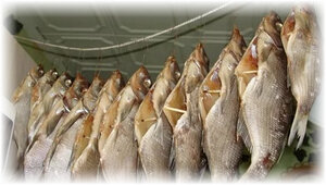 Перед сушкой хорошо просоленные тушки нужно тщательно промыть и обсушить. Если рыба получилась слишком соленой, то ее стоит вымочить в воде. Длительность вымачивания зависит от срока посола: если продукт солился неделю — вымачивать не более 7 часов.