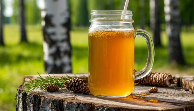 - Березовый сок — обязательный напиток дня, его пьют свежим, часто с медом.