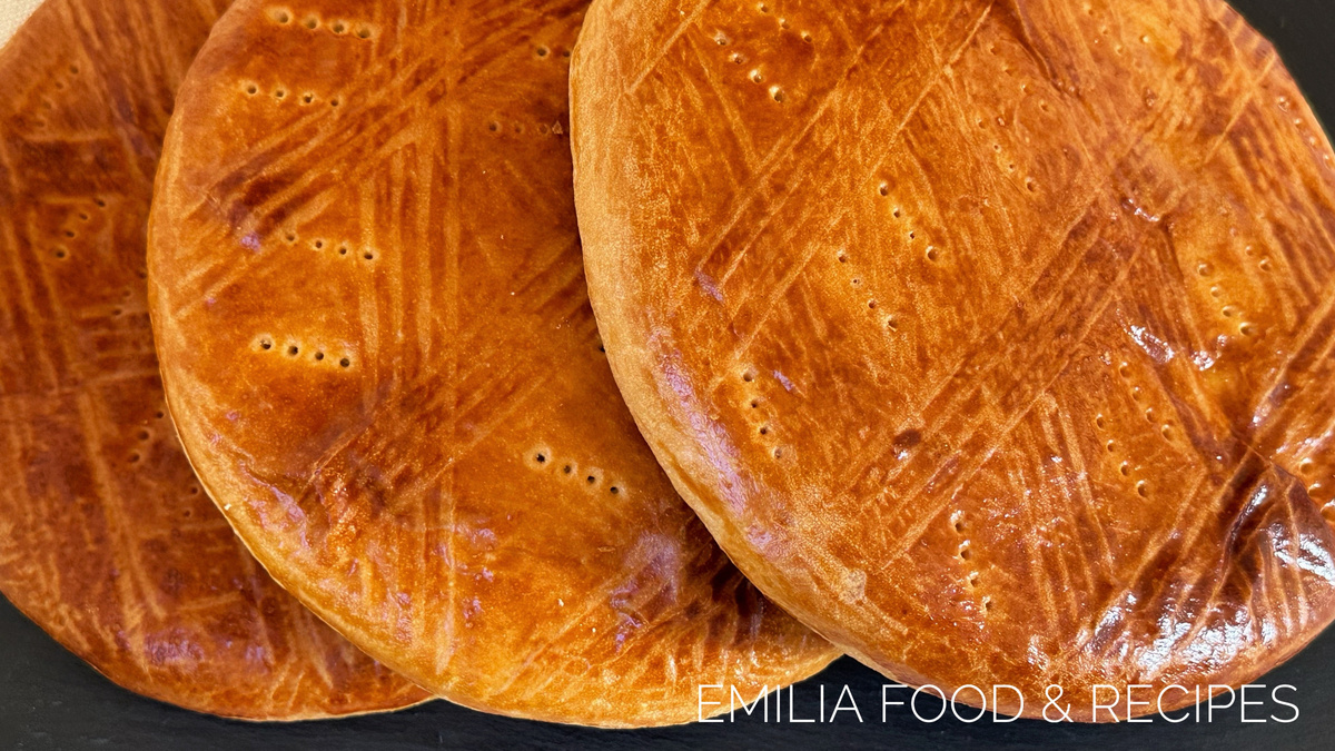 Следующий шаг — аккуратно раскатать лепешку толщиной чуть больше сантиметра и перенести на противень, предварительно застеленный пергаментом. Готовую гату смазываем яйцом с молоком и формируем узор с помощью вилки перед выпеканием.