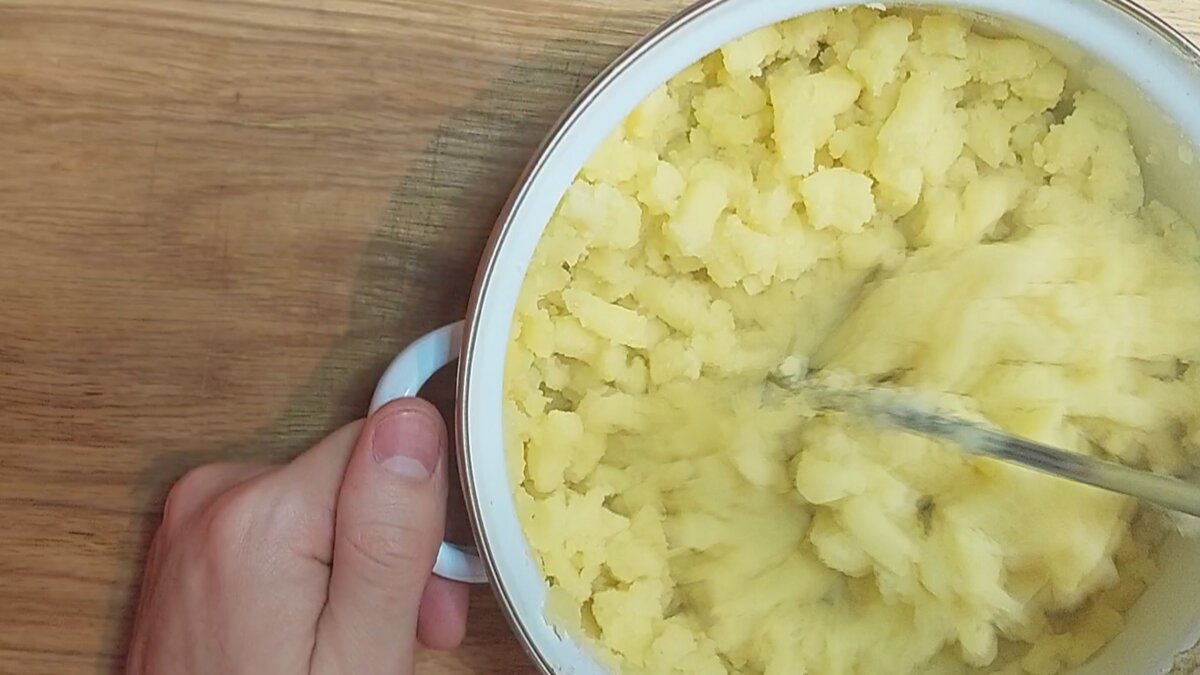 Для начала, нужно сварить картофель, порезав его на небольшие кусочки. Как только он станет мягким, следует тщательно его размять с помощью толкушки.