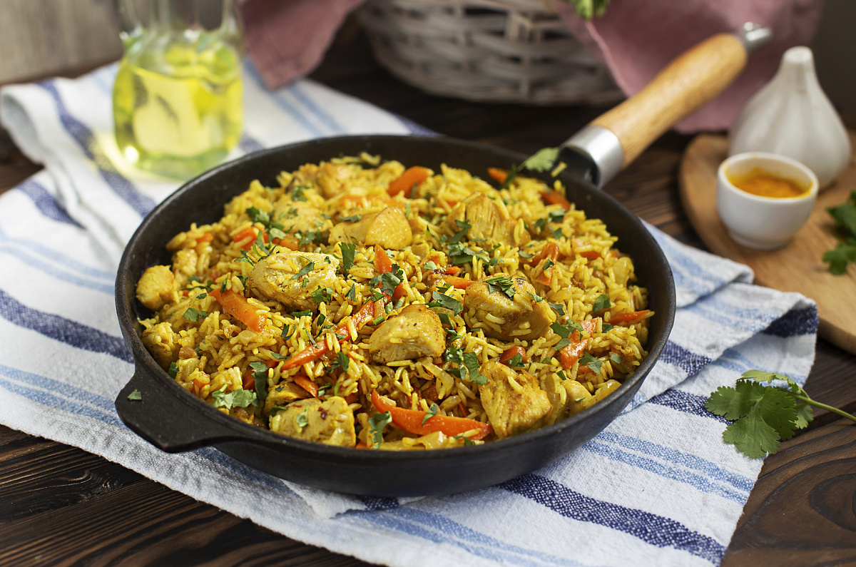 Взрывоопасное сочетание индийских вкусов теперь доступно и на вашей кухне! Плов «Джимми, ача-ача» с индейкой, морковью и ароматными специями подарит вам незабываемое гастрономическое путешествие. Его знакомый аромат моментально заполнит ваш дом, а традиционный длиннозерный рис Басмати придаст блюду уникальную текстуру. Неудивительно, что это блюдо становится популярным среди любителей индийской кухни.