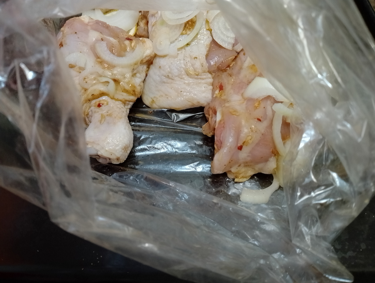 Начните с подготовки курицы: разделите её на части и тщательно перемешайте с натертым чесноком, аджикой, солью и любимыми специями. Лук стоит нарезать полукольцами, чтобы он равномерно впитался в блюдо.