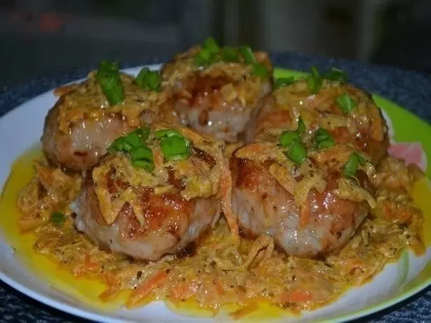 Для соуса: натереть морковь, нарезать лук кубиками и обжарить до золотистого цвета. Затем добавить воду, сметану и молоко, приправить сушеной зеленью, солью и перцем. Тушить до готовности. Готовый соус переложить к котлетам, создавая гармоничное сочетание вкусов.