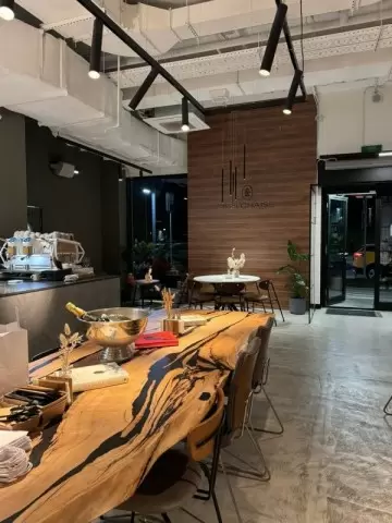 Ami Chaise притягивает внимание своим продуманным дизайном: здесь все сделано с заботой о посетителях. Просторные залы, строгие линии и отсутствие лишнего декора создают атмосферу спокойствия и расслабленности. Также доступна уютная веранда, хотя в час пик она может быть занята. Тем не менее, можно с удовольствием провести время за столиками внутри, утопая в беседе и наслаждаясь отменной кухней.