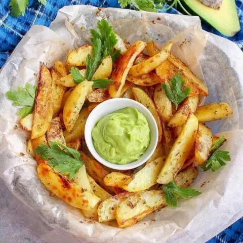 Готовый картофель подавайте горячим вместе с нежным авокадо-соусом. Это отличный вариант как для семейного ужина, так и для дружеской встречи. Приятного аппетита!