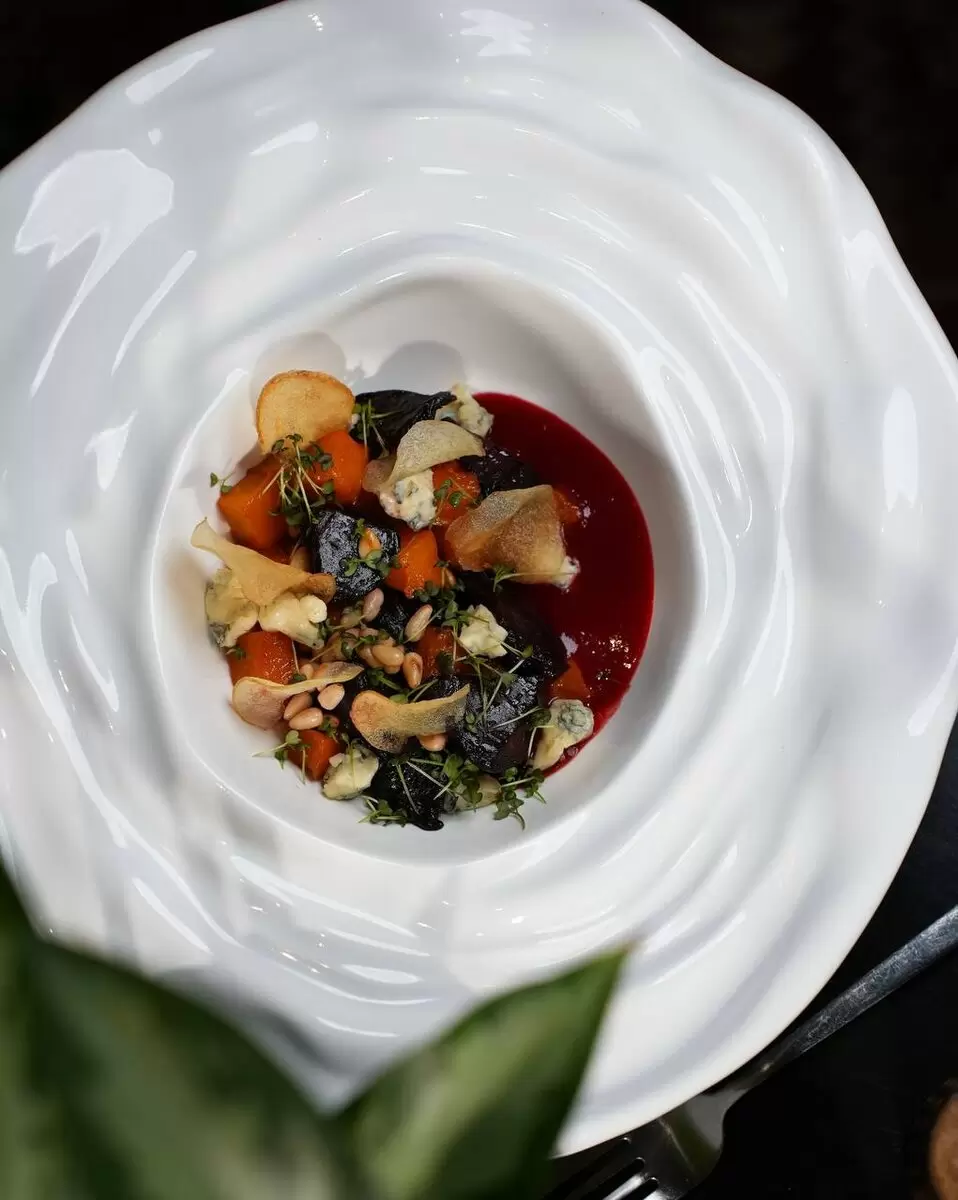 В центре гастрономических трендов этой осени — удивительное блюдо, которое восхищает не только своим вкусом, но и эстетической подачей. Запеченная тыква, дополненная копченой свеклой, горгонзолой и брусничным гелем, представлена в ресторанном меню заведения «Радио». Имея яркие цвета и насыщенные вкусовые сочетания, эта композиция идеально передает дух сезона и готова удивить каждый гурманский взгляд.