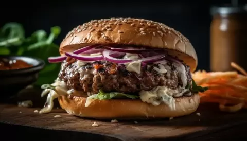 Бургер из ягненка — это не просто еще одно блюдо быстрого питания, а настоящий кулинарный восхитительный опыт. Сочетание нежного мяса ягненка, ароматного мятного соуса и сладковатого карамелизированного лука делает этот бургер уникальным. Такой гастрономический хорар не оставит равнодушным ни одного гурмана.