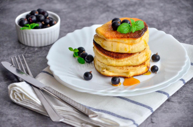 Готовые панкейки должны быть высокой и пышной формы. Подавайте их горячими, щедро полив сиропом или украшенными ягодами и сливочным маслом для наилучшего вкусового сочетания.