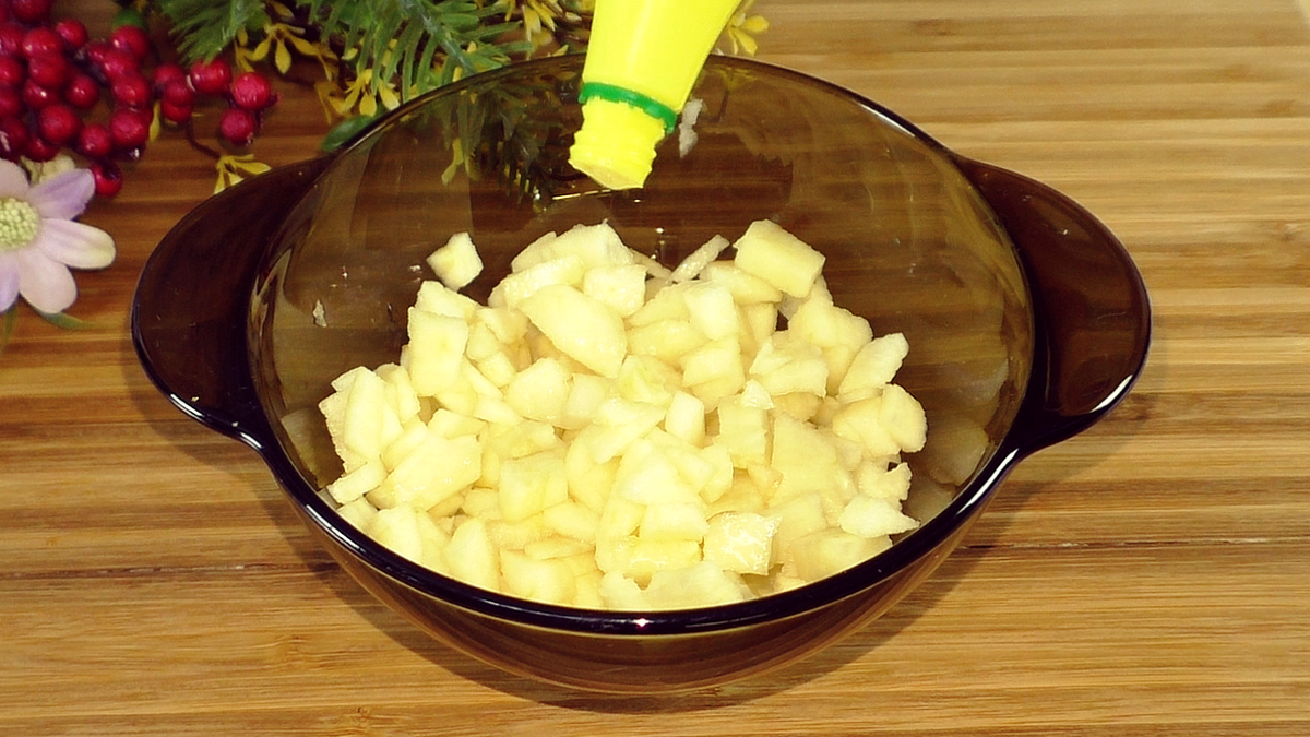 Добавьте яблоки (если используете) и дайте тесту постоять 10 минут.