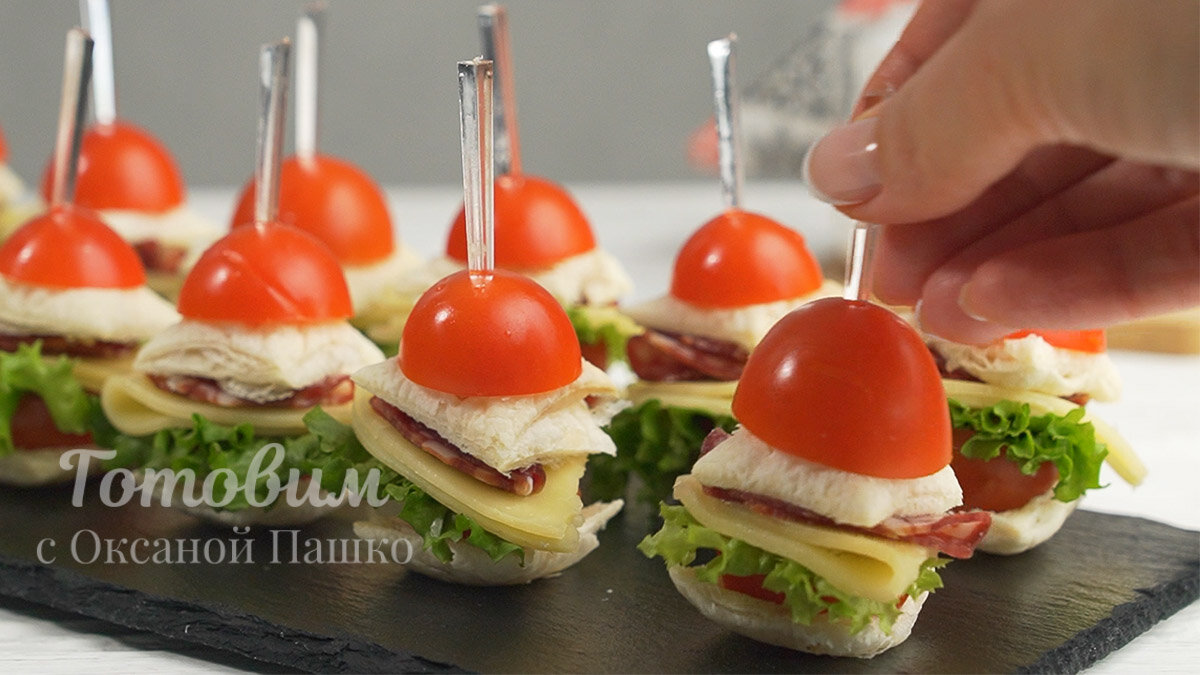 Чтобы сделать новогодний стол поистине уникальным и произвести впечатление на гостей, стоит попробовать интересный и яркий вариант закуски на шпажках. Это маленькие бутербродики, которые, безусловно, порадуют всех. Канапе с овощами, сыром, колбаской и изысканным слоеным тестом – идеальное решение для праздничного стола.